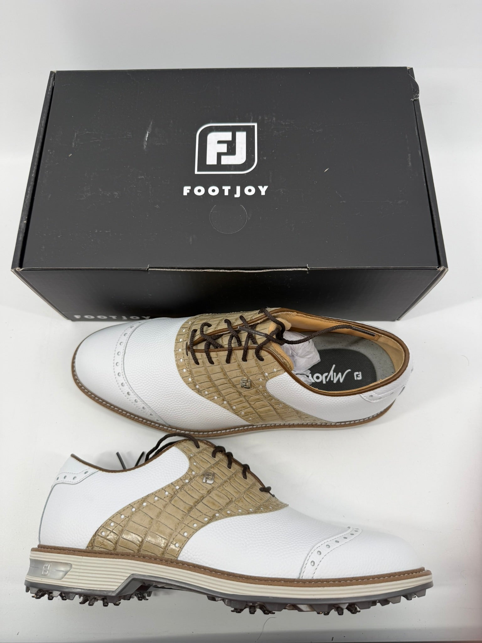 Footjoy Myjoys Premiere Series Wilcox Golf Shoes White Tan Saddle 9.5 Medium