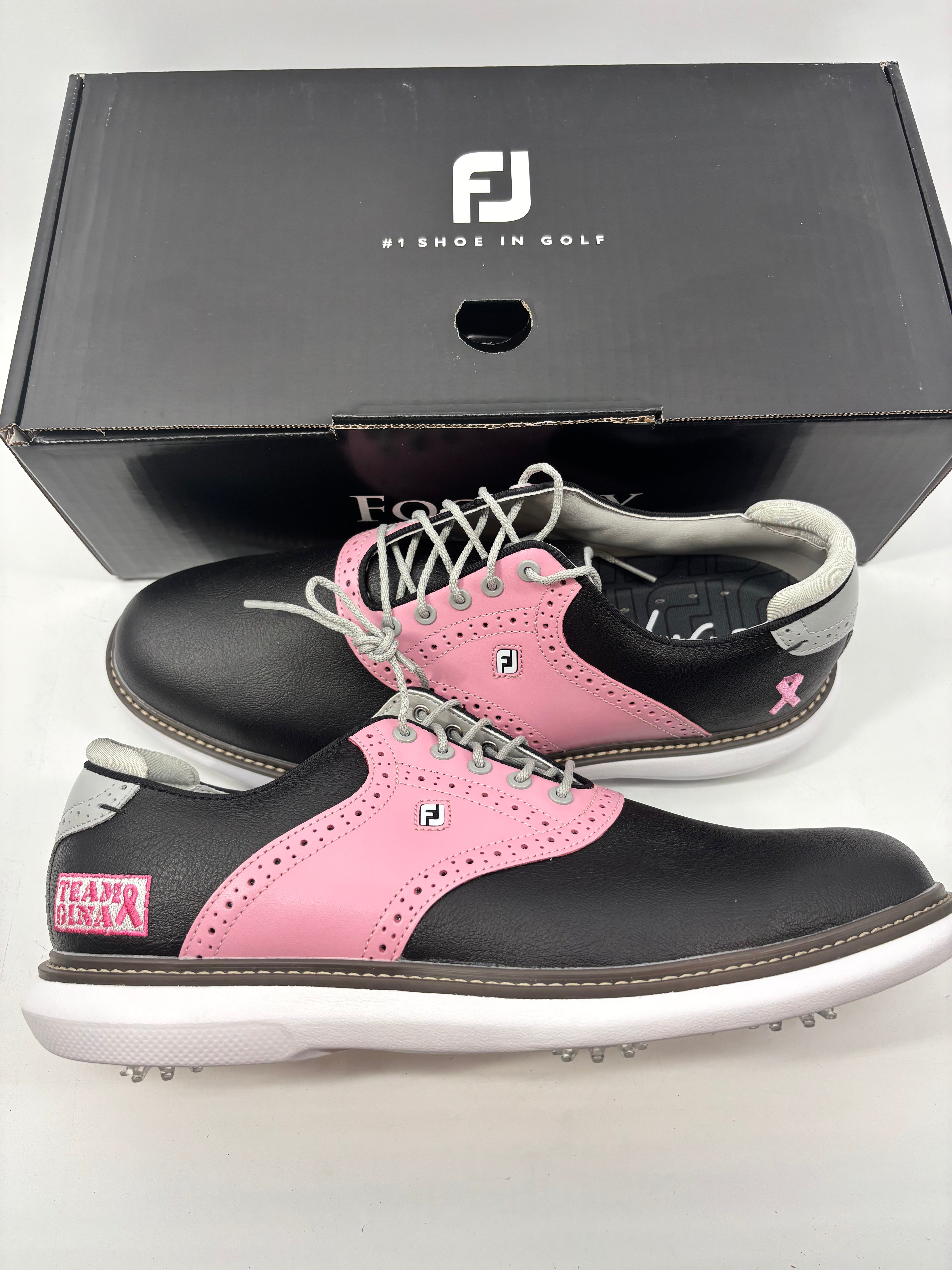 Footjoy Myjoys Traditions Series Golf Shoes Black Custom Pink Ribbon 11.5 Medium