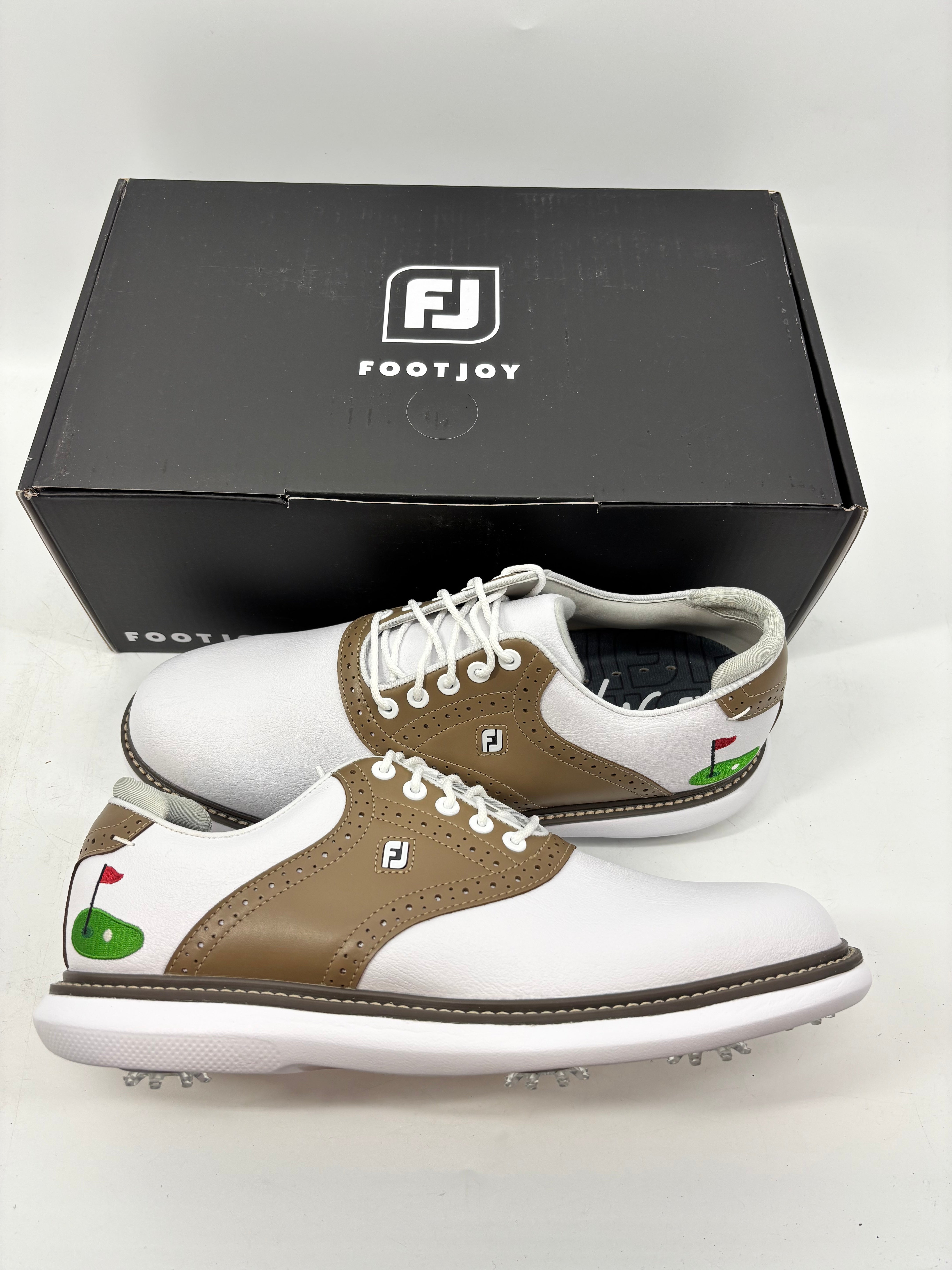 Footjoy Myjoys Traditions Series Golf Shoes White Brown Custom 8 Medium Logos