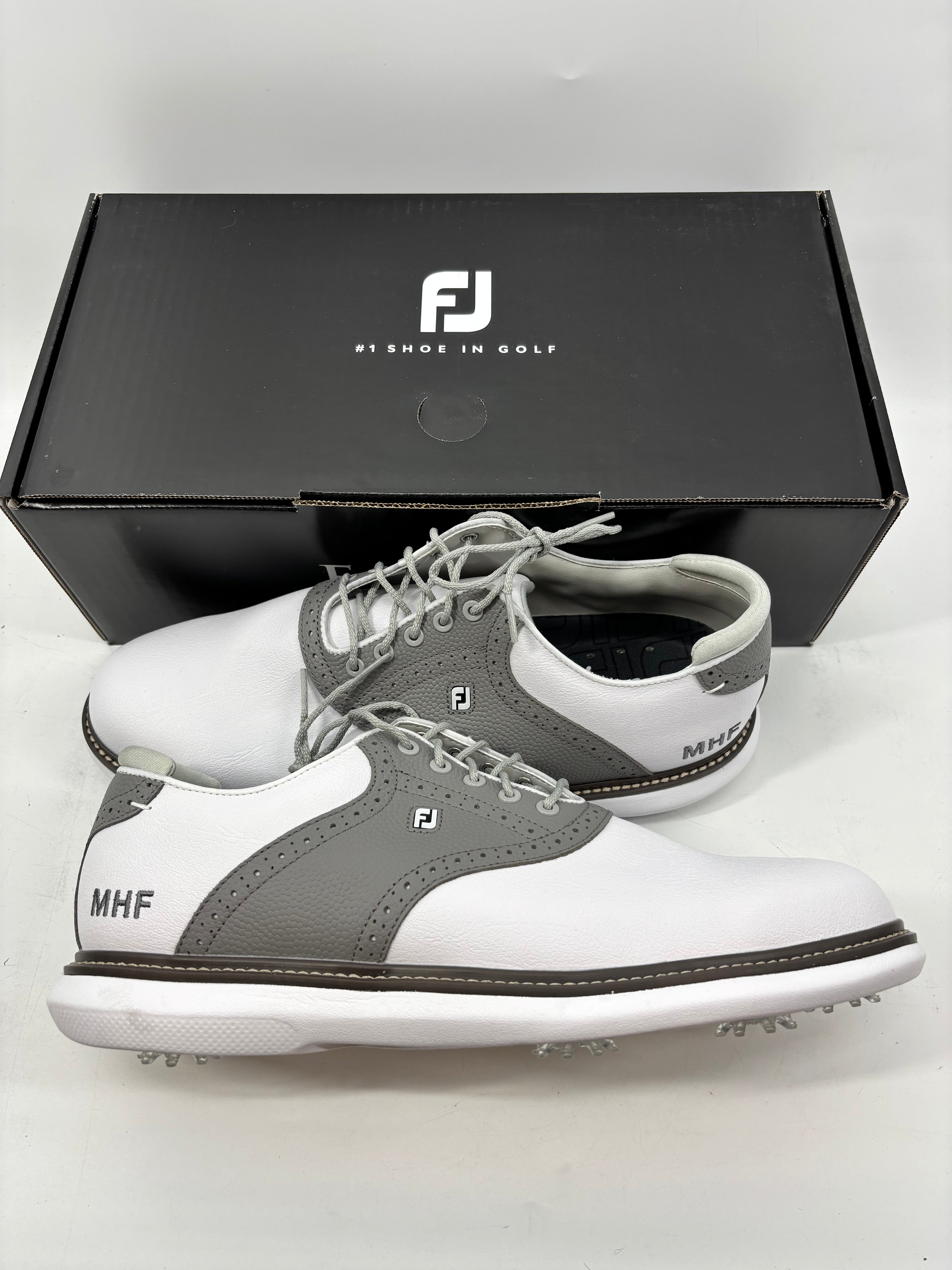 Footjoy Myjoys Traditions Series Golf Shoes White Grey MHF Logo Size 11 Wide