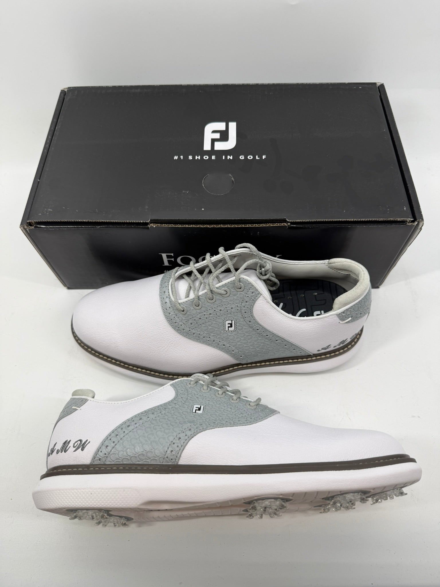 Footjoy Myjoys Traditions Series Golf Shoes White Pebble Initials AMW 9 Wide