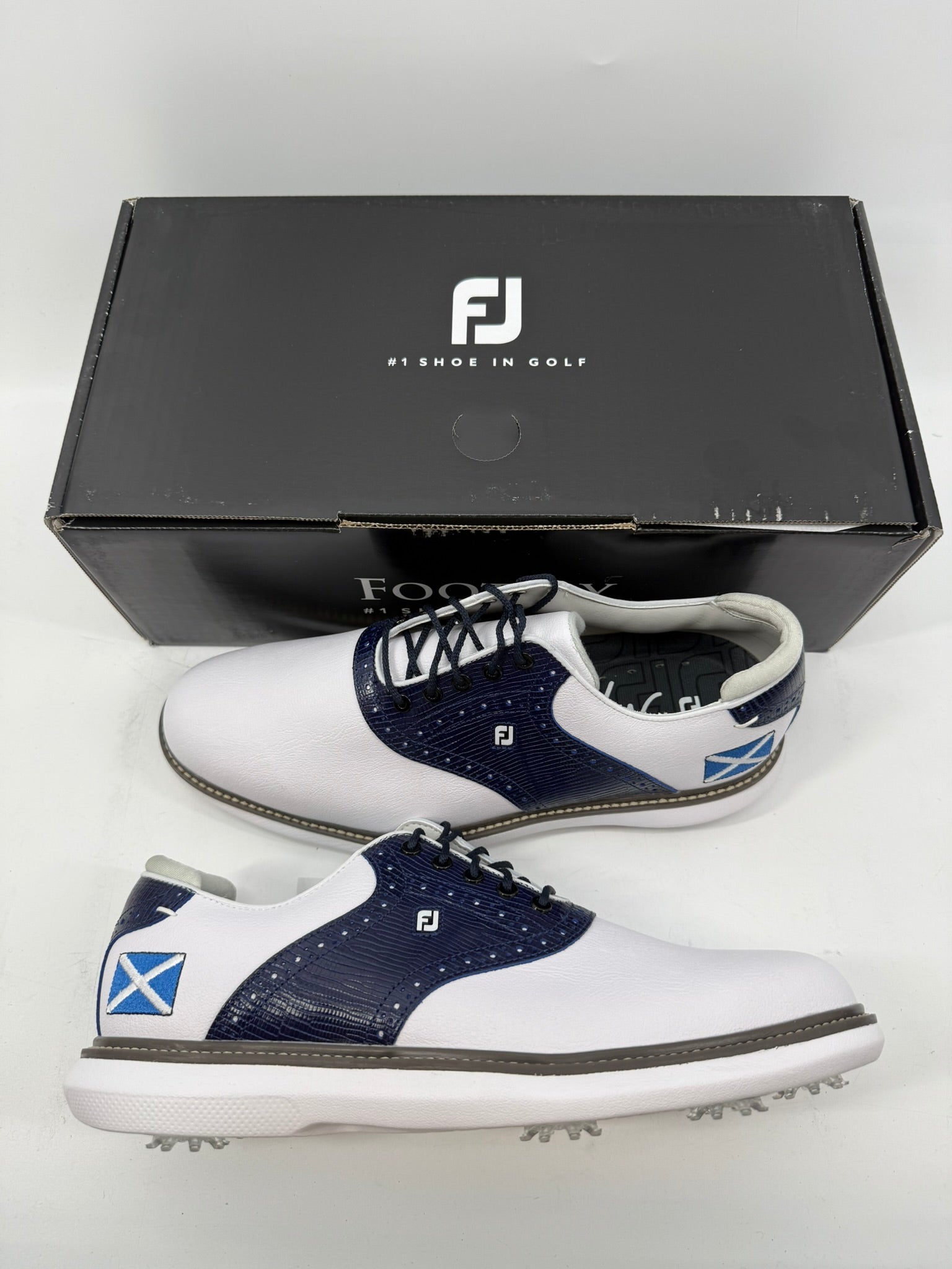 Footjoy Myjoys Traditions Series Golf Shoes White Pebble Scotland Flag 10 Medium