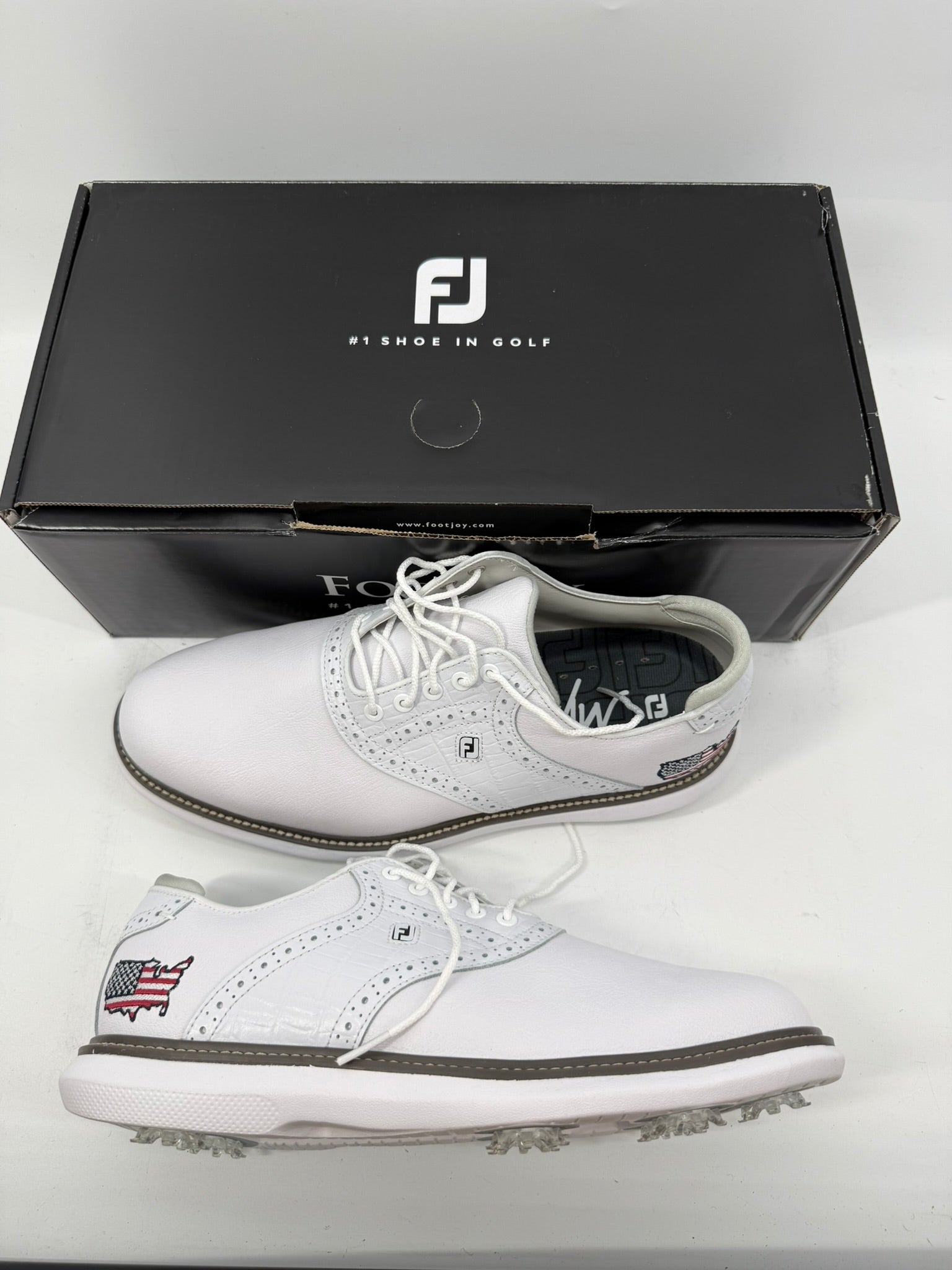 Footjoy Myjoys Traditions Series Golf Shoes White Pebble U.S.A. Logo 9.5 Wide